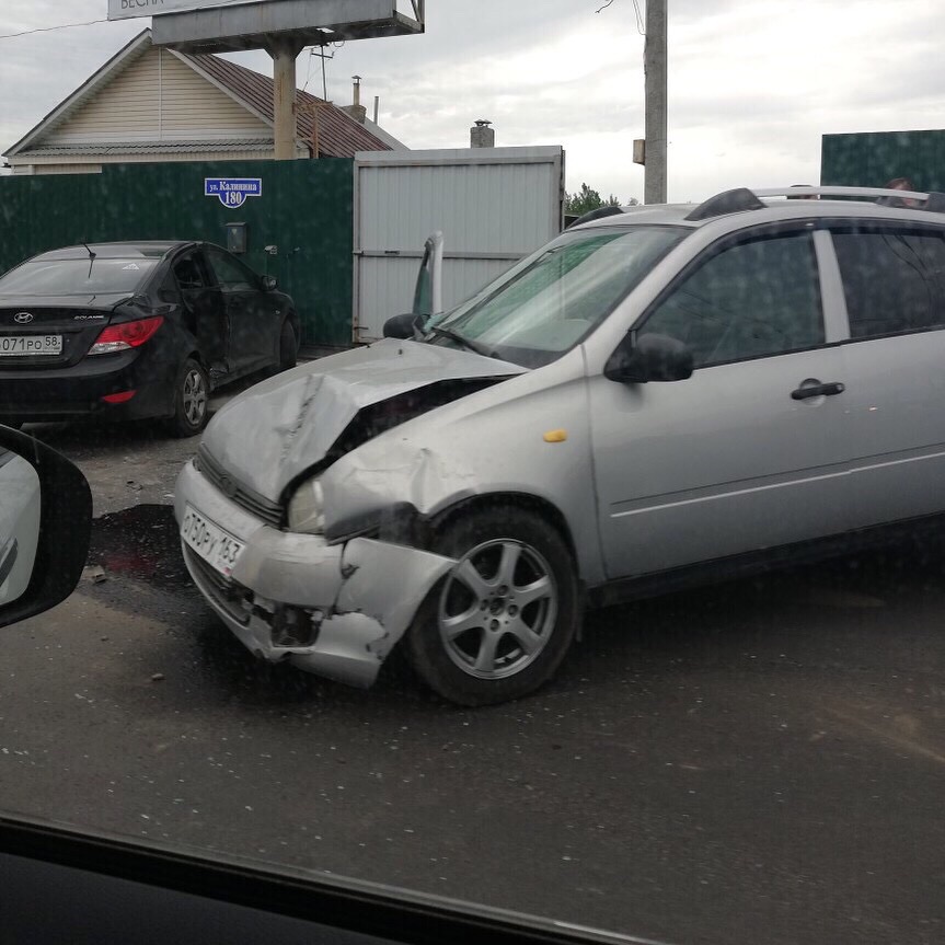 Сегодня утром вблизи дома № 180 на улице Калинина произошло ДТП с участием двух автомобилей: «Лада Калина» и «Хендай Солярис». Информация об аварии, а также фото размещены в одной из групп в соцсети «ВКонтакте».